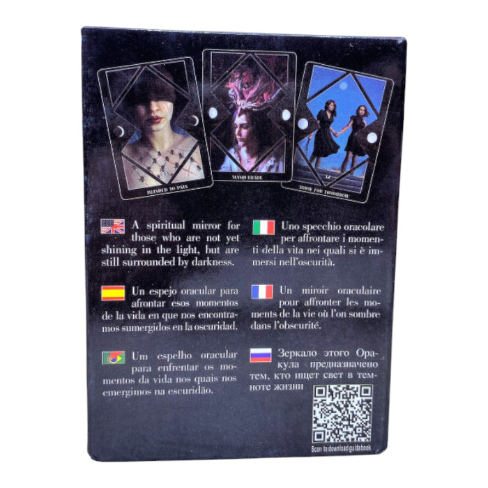 A fekete tükör oracle kártya segít abban, hogy újra kapcsolatba tudj lépni a belső éneddel és elfogadd a Benned rejlő sötétséget. Sokan kiegészítő kártyaként használják, hogy feltárhassák a sötétebb oldalaikat is. Olyan dolgokkal foglalkozik, mint bűntudat, düh, szomorúság, harag vagy irigység, de tartalmazhat Önmagunk olyan darabjait is, amelyeket biztonsági okokból vagy az elutasítás megakadályozása érdekében rejtegetünk. Árnyékmunkát jelent önmagunk ezen részeinek feltárása, és végül újrabeilleszkedése. Ez hosszú és nehéz munka lehet, de gyakran nagyon gyógyító munka is.