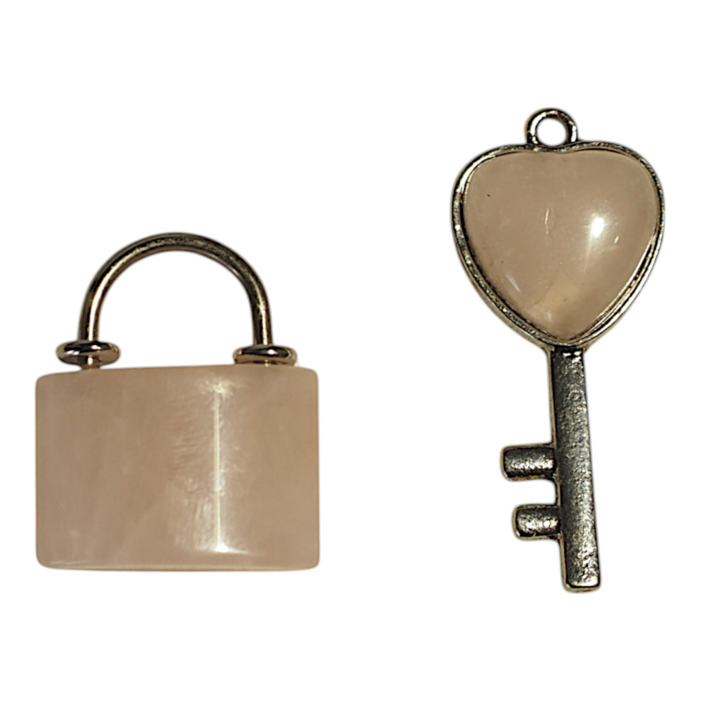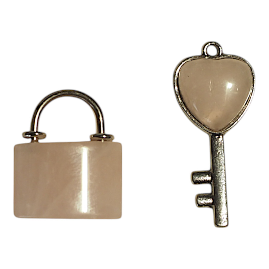 Lakat és szívalakú kulcs, rózsakvarcból. Medálként használható.