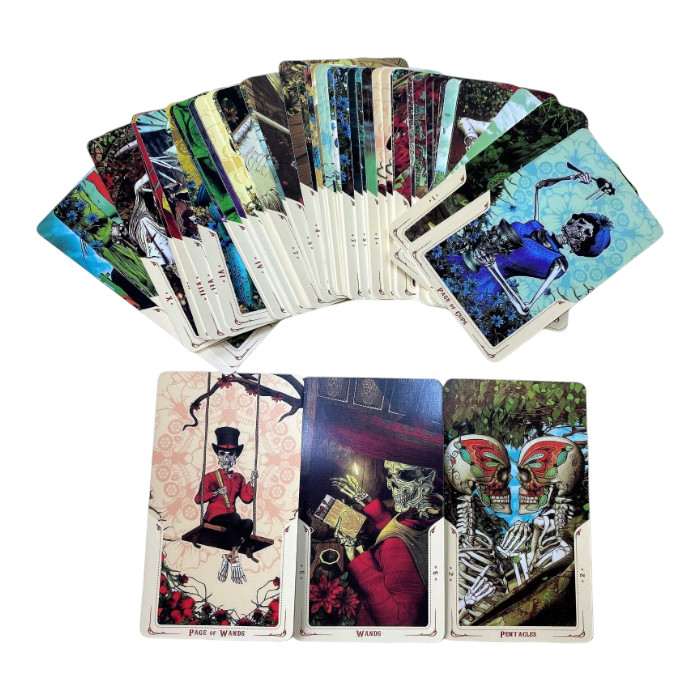 A Santa Muerte tarot egy csodálatos kártya, mely tele van a halottak Istennőjének megtestesítésével és a mexikói halottak napjából származó hagyományos csontvázikonokkal. A mexikói hagyomány az élet részeként ünnepli a halált, ez a kártya is ezzel a filozófiával működik.