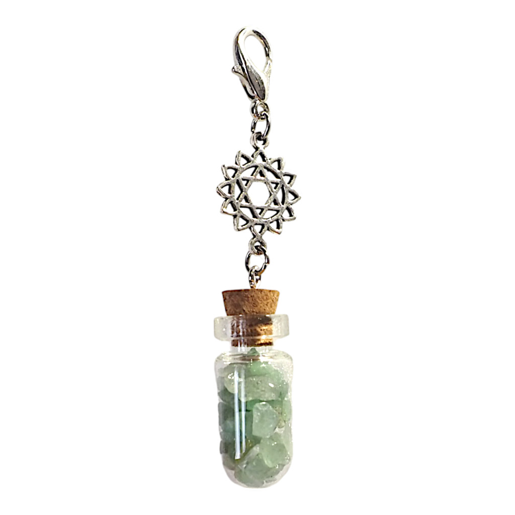 Törmelékes aventurin ásvánnyal töltött üvegcse kulcstartó. Használhatod kulcstartónak vagy táskadísznek.
