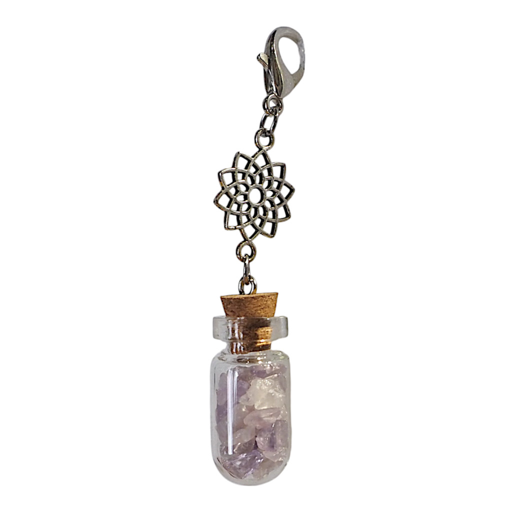 Törmelékes ametiszt ásvánnyal töltött üvegcse kulcstartó. Használhatod kulcstartónak vagy táskadísznek.